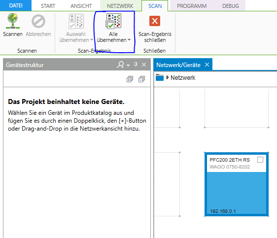 📌 Please note that this scanning process can take multiple trials to detect the PLC. If a PLC is not detected immediately, scan again.