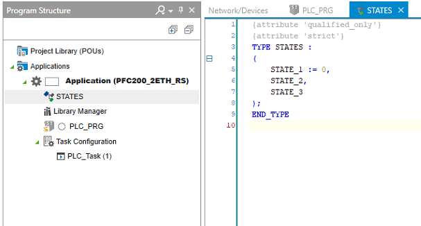 In the program code window, write a CASE OF statement to switch between your states. Use the Entry variable to implement the entry code.