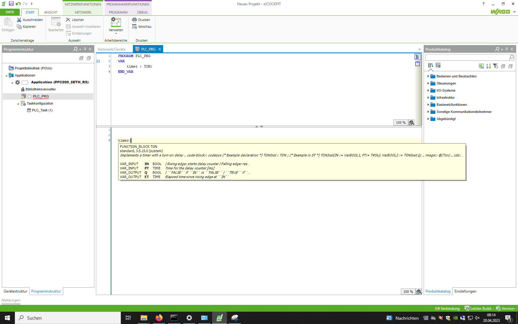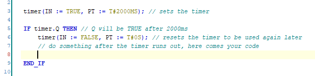 To use a timer, create a timer variable in PLC_PRG and call it anything, for example, timer. This variable is of data type TON. Give it no default value. TON Documentation