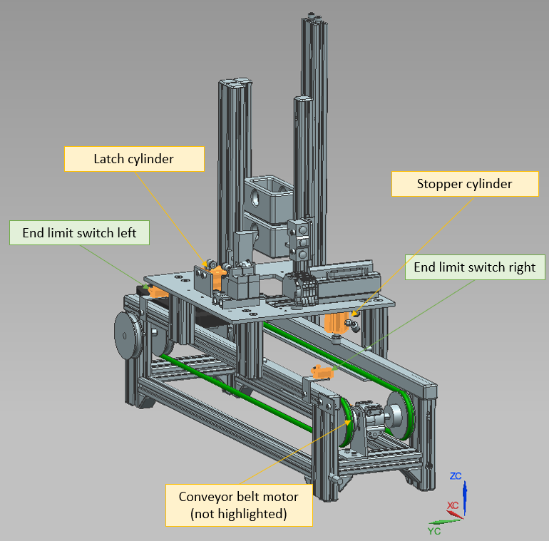 The IMS5 has entry and exit sensors at the start and end of the conveyor belt (see section on IMS5 Station Functionality). These two sensors will be simulated as two small cubes with collision sensor properties.