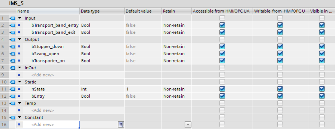 bCylinder_outas the boolean condition-variable for these operations. - Create a boolean signal and use an operation to turn the conveyor belt on and off.