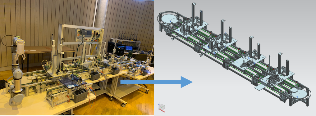 The following sections will handle each IMS station. The task is to build a kinematic model in NX MCD and write a control code in TIA Portal for each station. The control code should be uploaded to a simulated PLC, and an OPC-UA connection should be established between the PLC and the kinematic model.